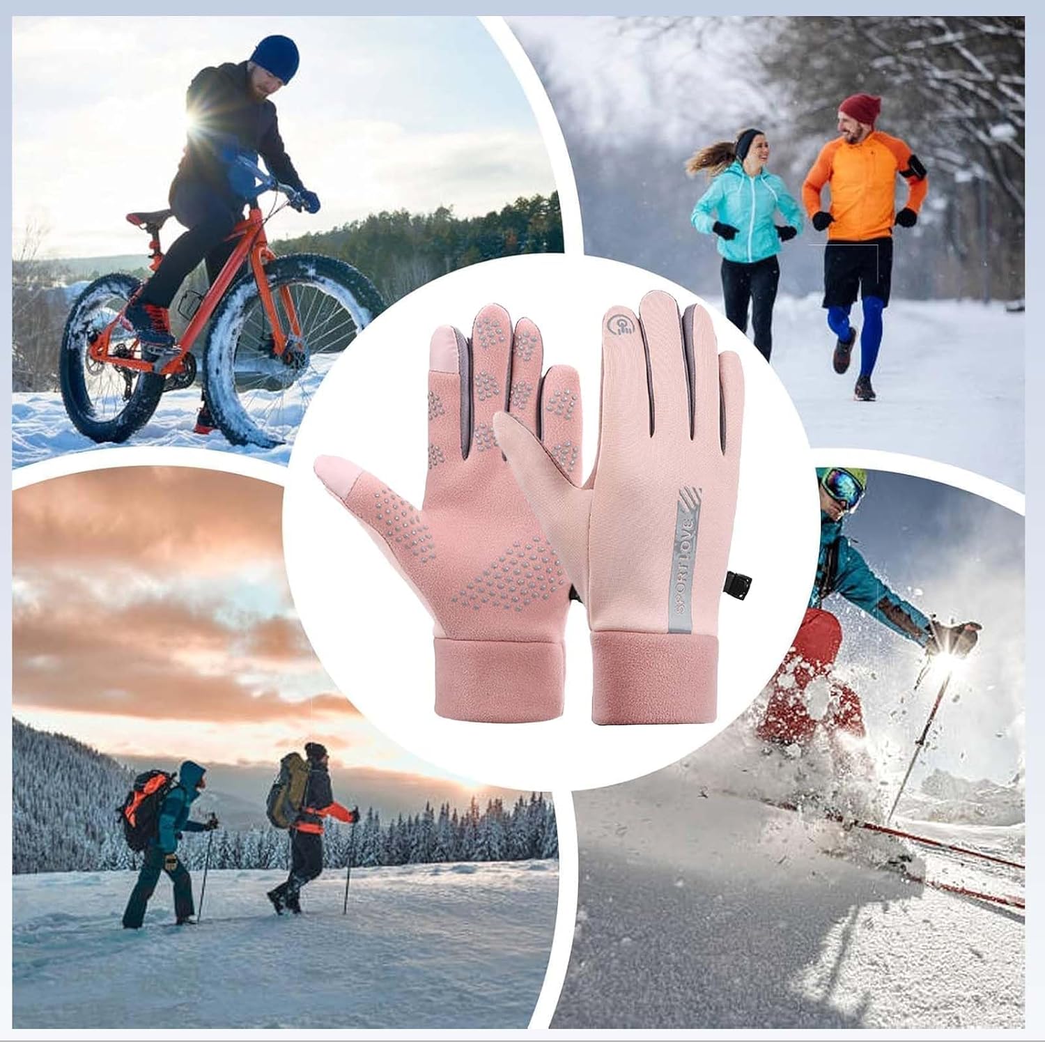 【Non-Slip Cycling Gloves】 Anti-slip silicone design on the palm patches and fingers for a better grip even in rainy days, abrasion resistant and anti-skid. The hiking gloves help you drive, bike, and open doors with ease without removing your gloves. Lightweight and eco-friendly, portable for outdoor sports such as: running, cycling , climbing, hiking, biking, driving, fishing, or staying at home in spring, fall and early winter, or as a liner for thicker winter gloves.