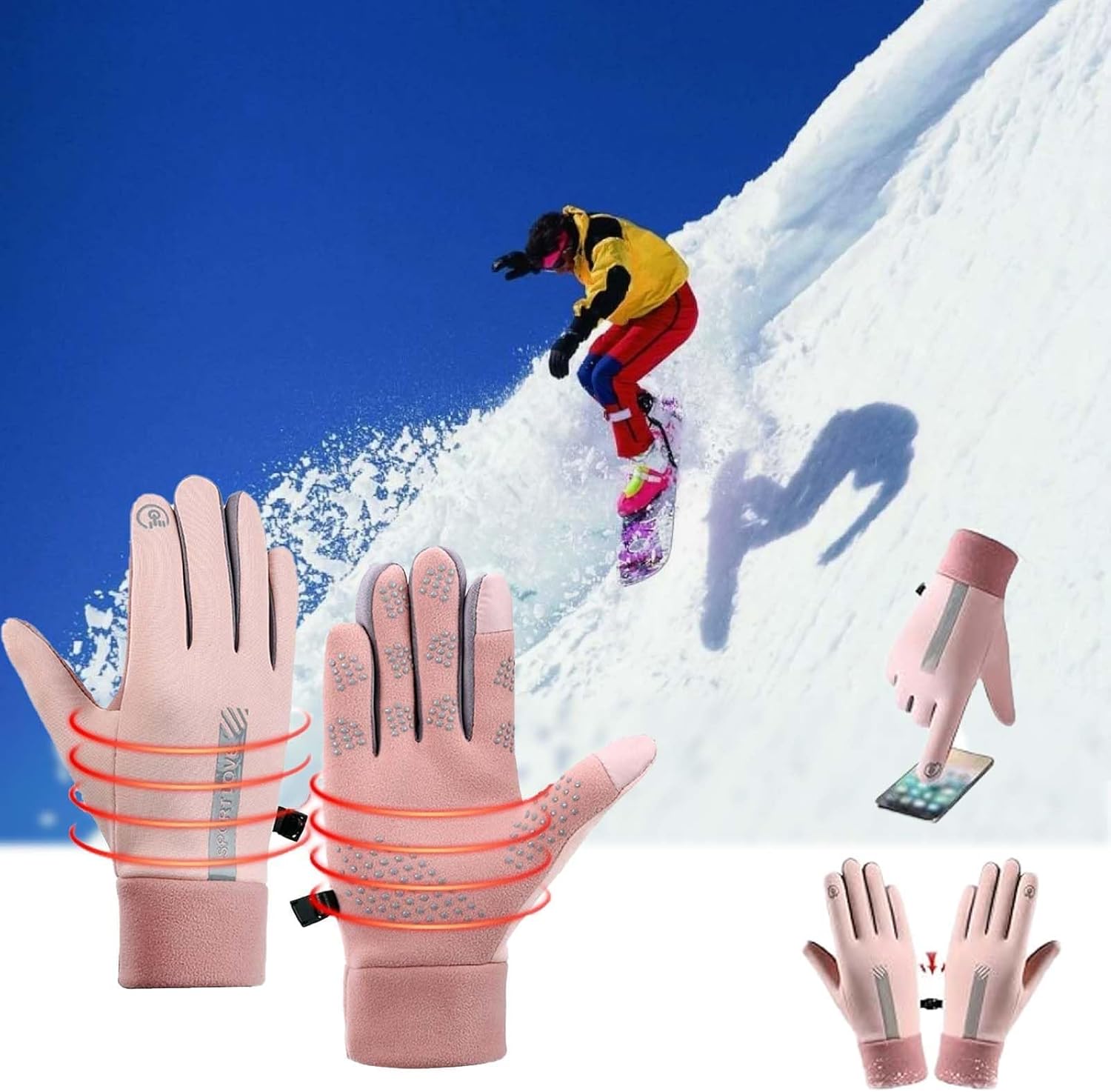 MXHBSTP Waterproof Gloves, Cycling Gloves, Touchscreen Running Gloves Warm Winter Gloves for Men And Women, Hiking Gloves for Football/Mountain/Biking/Cycling/Rugby/Running/Hiking
