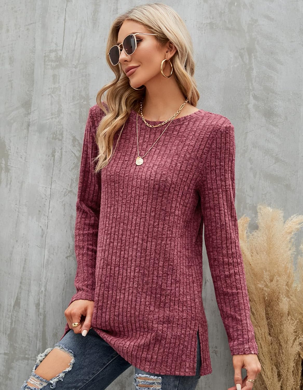 Women’s Casual Long Sleeve Tops Side Split Crewneck Jumper