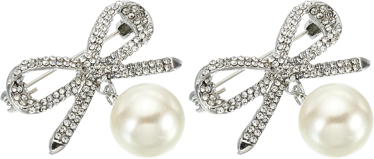 PATIKIL Artificial Brooch Pins, 2Pcs Fashion Brooch Safety Pins Clips for Women Sweater Shawl Dress Clothing Decoration Accessories, Silver Silver Tone