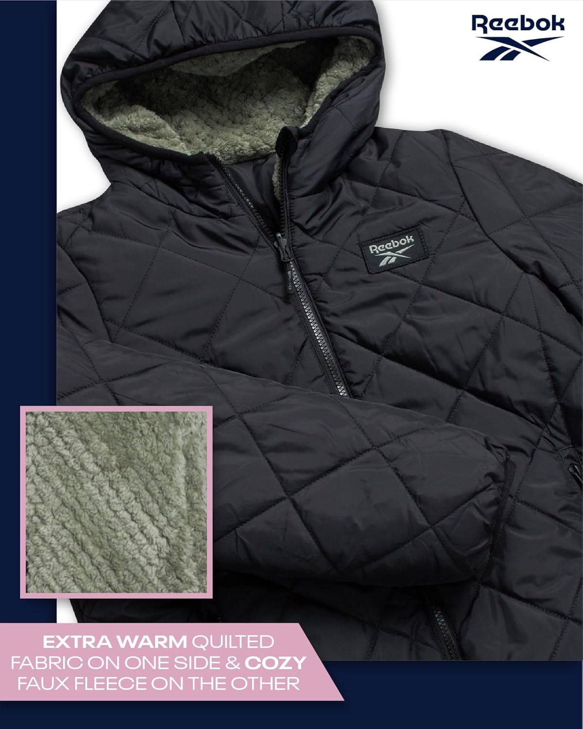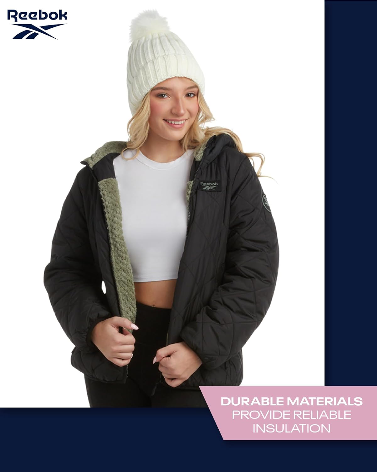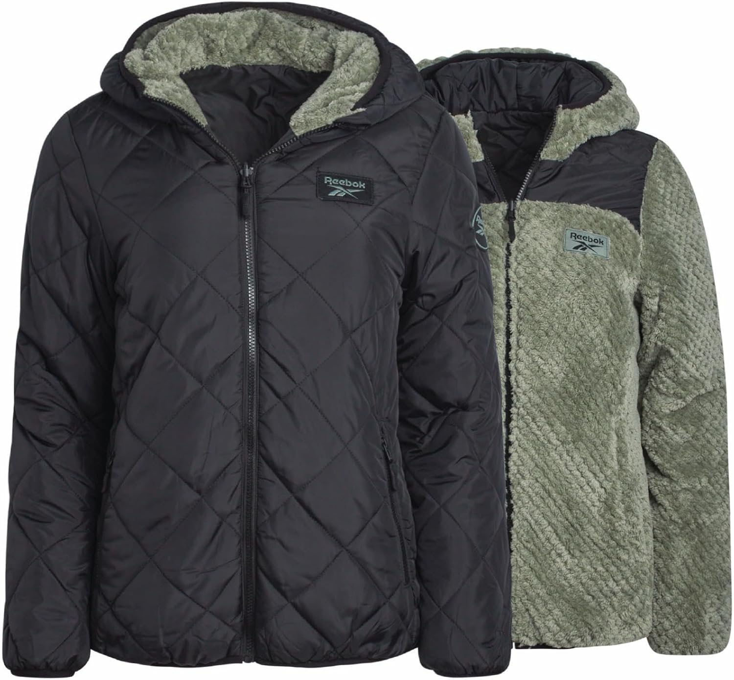 Reebok Women’s Puffer Jacket – Quilted Puffer Reversible to Faux Fleece Jacket – Insulated Winter Jackets for Women (S-XL)